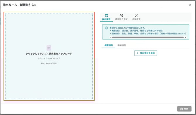 請求書から自動的にデータを抽出するためのルールを設定します。