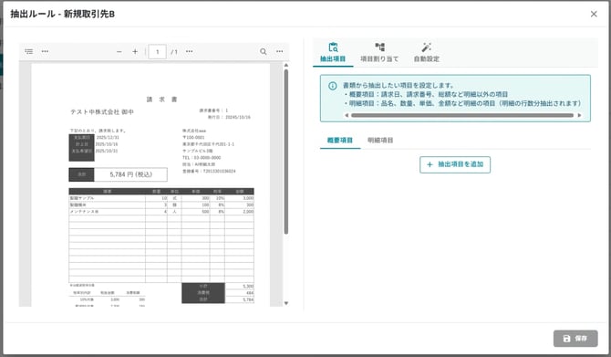 - 新しい取引先の請求書に対する抽出ルールの追加