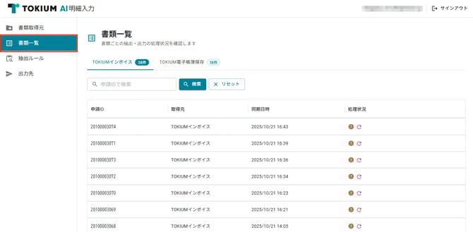 ラベルは、TOKIUMインボイスおよびTOKIUM電子帳簿保存に登録済みのものが15分ごとに自動で取得され、取得されたラベルは取り込みラベルの一覧に表示されます。