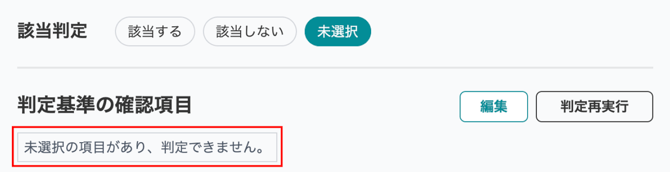 - 判定項目が1つでも不明の場合は「未選択の項目があり、判定できません」と表示されます。