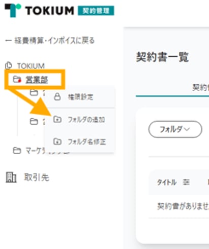 ユーザーにフォルダ内の契約書に対する権限を割り当てる方法とフォルダ名の修正方法について説明します。