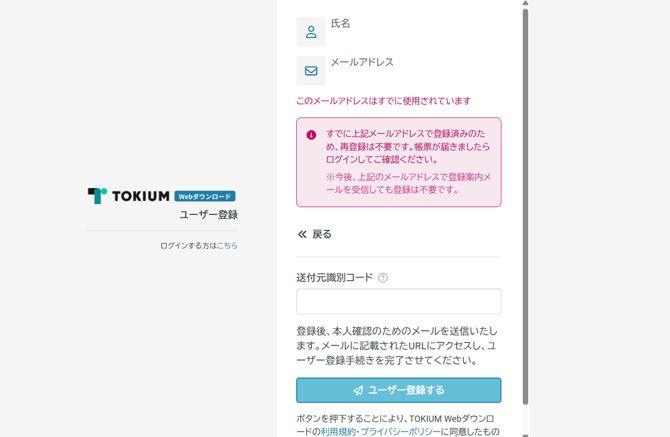 ※アクセス権失効後に送付元の取引先マスタへ再登録されたユーザーは、ユーザー登録不要で既存アカウントのままログインできます。