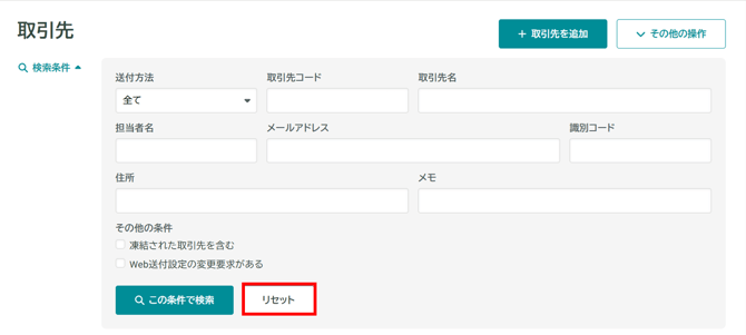 ③検索条件による絞り込みを解除したい場合は[リセット]をクリックします。