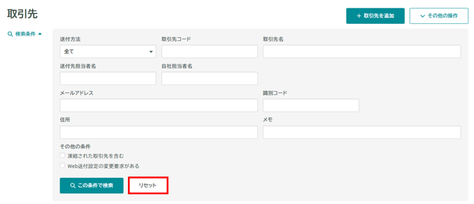 ③検索条件による絞り込みを解除したい場合は[リセット]をクリックします。