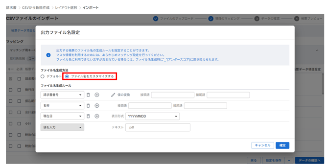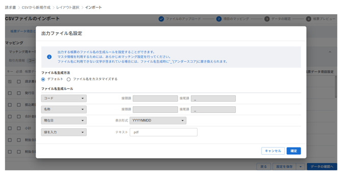 作成される請求書のファイル名を設定することができます。